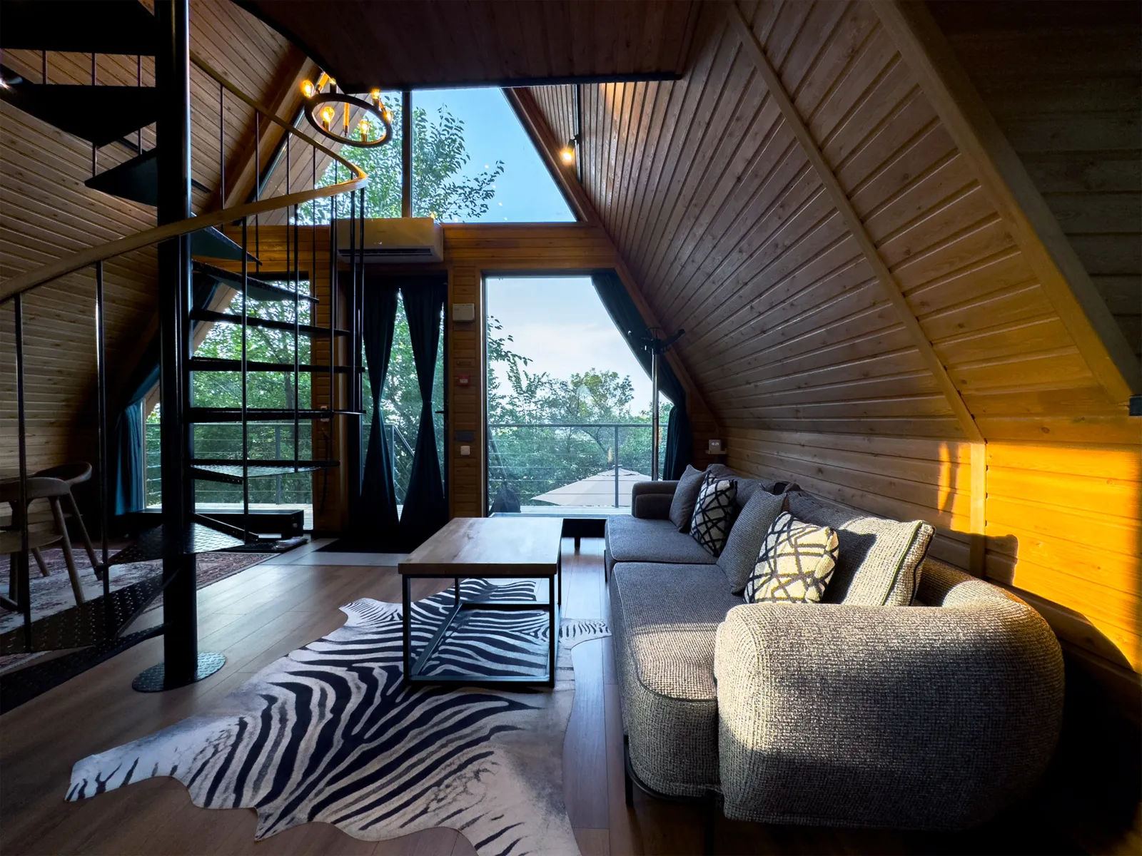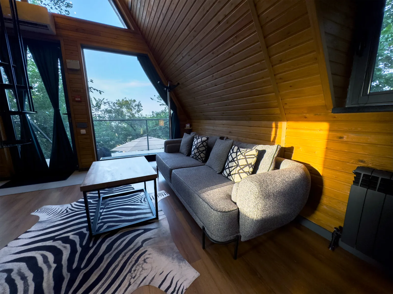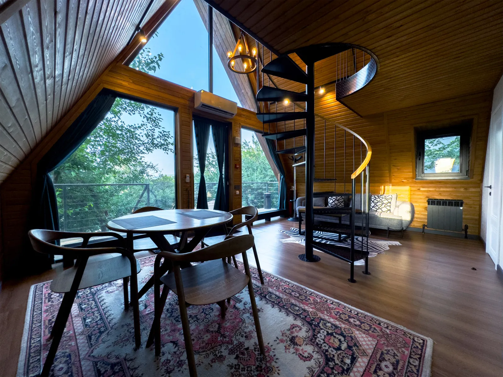 «Шале» — это настоящий альпийский домик, перенесённый в горы Заилийского Алатау. Высокие деревянные потолки, просторная кухня-гостиная и уютная спальня на втором этаже. Терраса открывает панораму города и телебашни Кок-Тобе. Вмещает до 4 гостей — идеально для семьи или пары друзей.